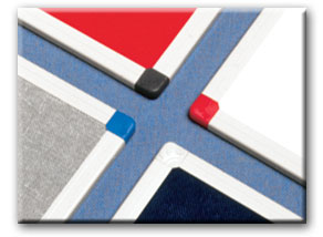 Well-proven by years of service in 1,000s of locations, the working heart of the board is made from a special core that grips on the push pins to hold displayed notes securely. This special core has self-healing properties to help combat the effects of being deeply pin punctured, after continual use which is covered by a three year guarantee. Tough does not mean mundane, as EAD boards not only offer a wide choice of fabric colours (150 from stock) but also four different colours of corner trim that have snap-on covers to conceal the wall fixings. For areas that have both Pinboard and Whiteboard requirements, both types of boards can be ordered with matching trim and corner cap colours. |