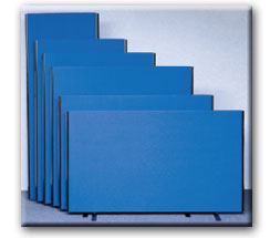EFS and ELK Acoustic Office ScreensThe EFS range of Freestanding screens are unique in their ability to offer a host of special features which you would only expect to find on more expensive products. They are available with a choice of edging in dark grey, light grey, silver, light oak, brown or black, (silver and light oak are optional extras), with five types of feet and special floor hugging feet for busy office areas. Shelving systems, height options, width options, flat, curved, vision, angled, shaped and system screens, plus custom made screens to your specification. They have good acoustic qualities and a choice of over 150 fabric colours.